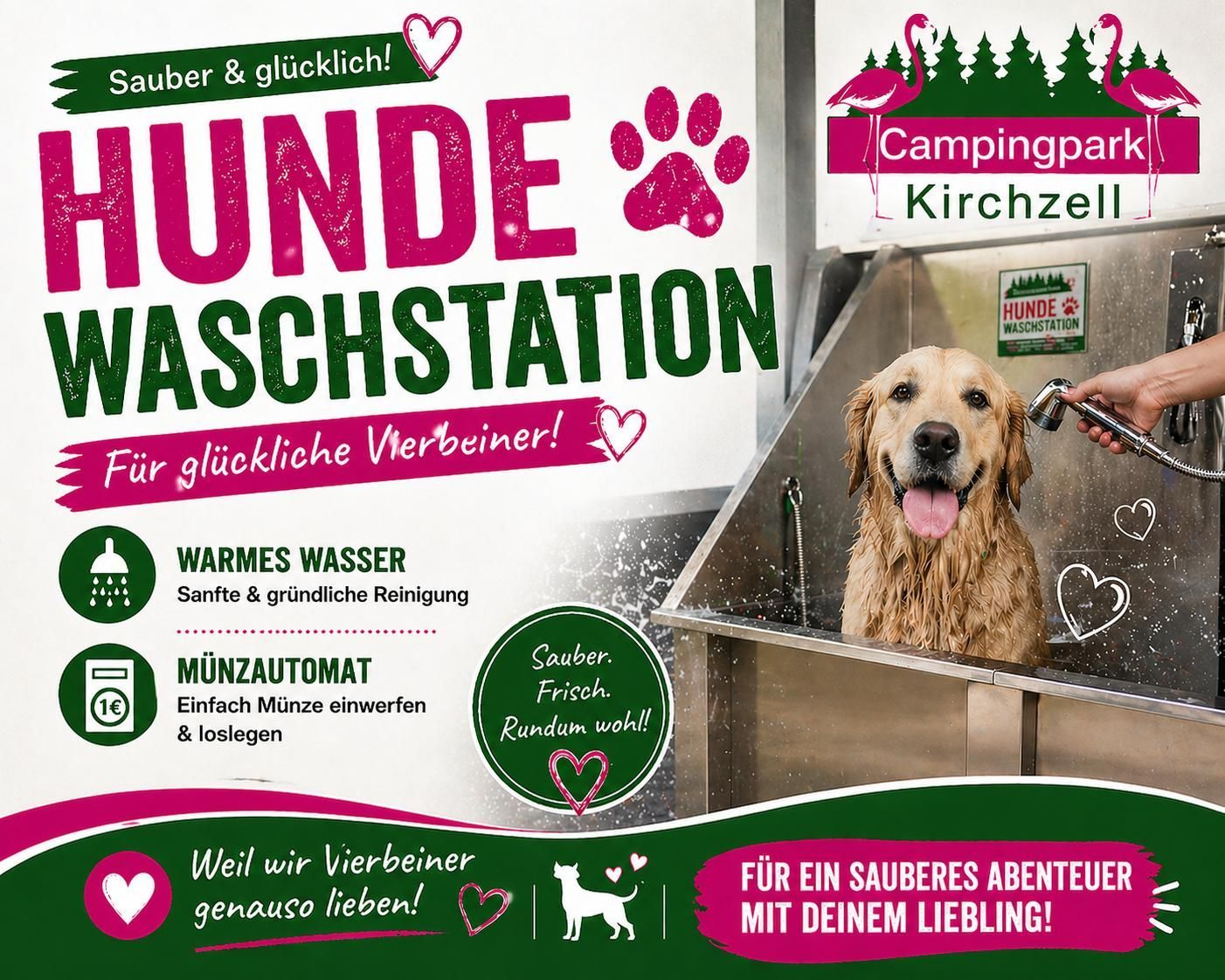 Neu bei uns, die Hundewaschstation, damit sich auch Euer Vierbeiner wohlfühlt.