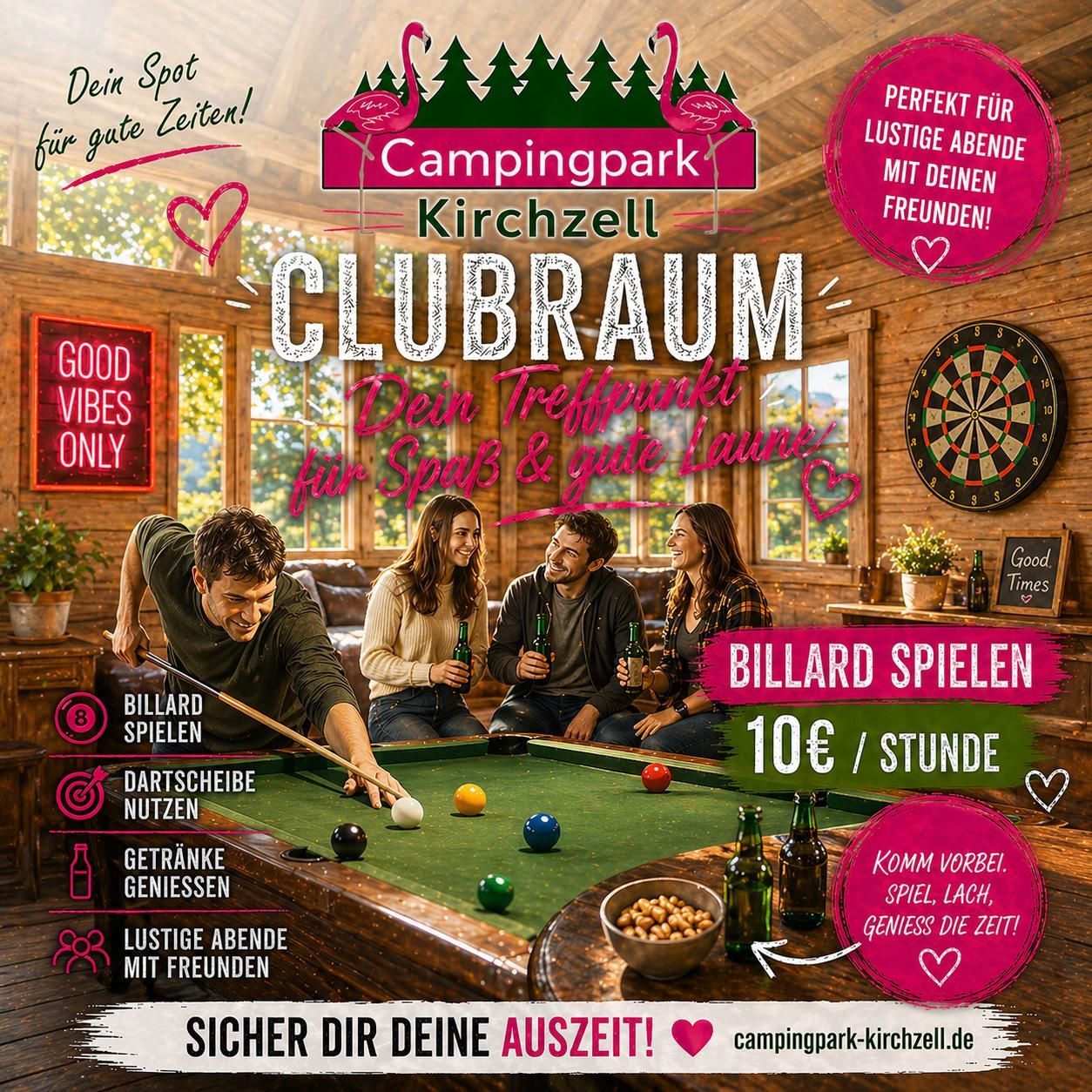 Hier können unsere Gäste bei Billard und Dart einen gemütlichen Abend verbringen